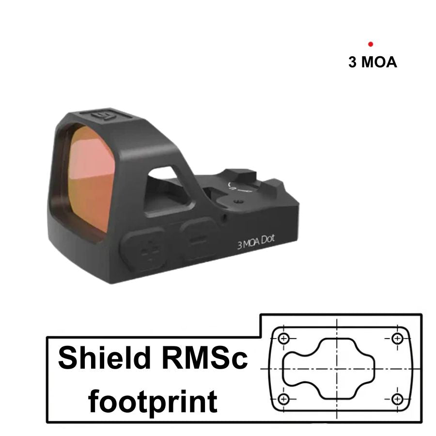Dieses Rotpunktvisier verwendet den Shield RMSc Footprint Standard.